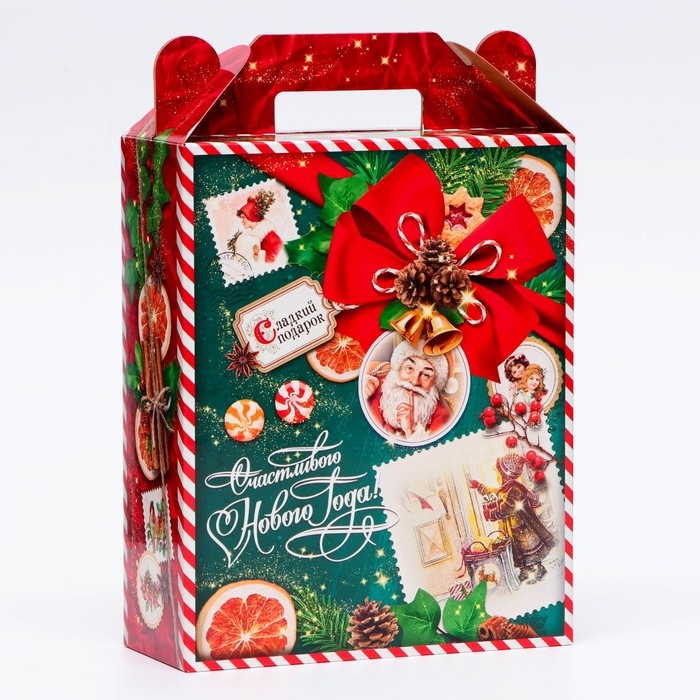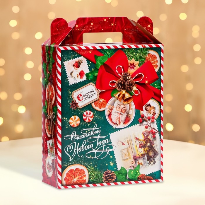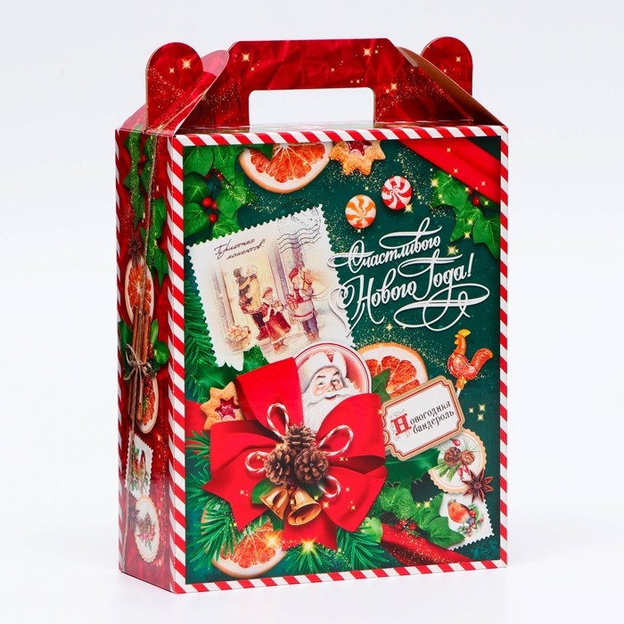 Коробка выполнена из качественных материалов, которые обеспечивают сохранность содержимого. Она имеет яркий и красочный дизайн, который отражает атмосферу Нового года.