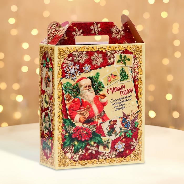 Коробка выполнена из качественных материалов, которые обеспечивают сохранность содержимого. Она имеет яркий и красочный дизайн, который отражает атмосферу Нового года.