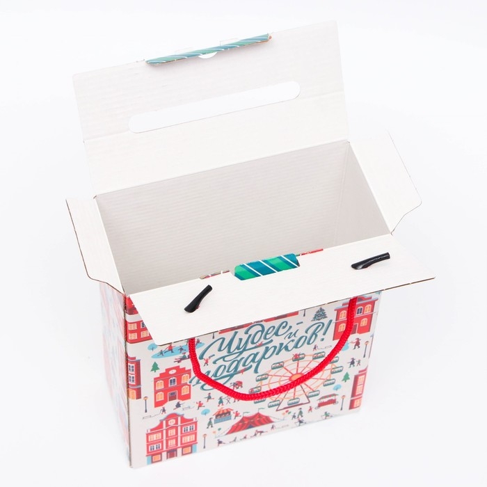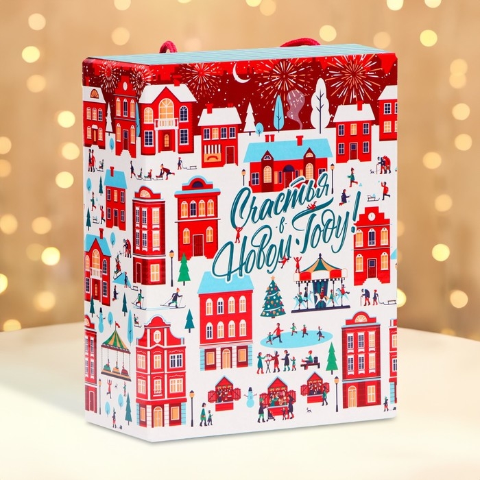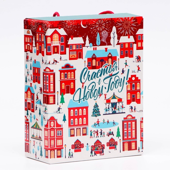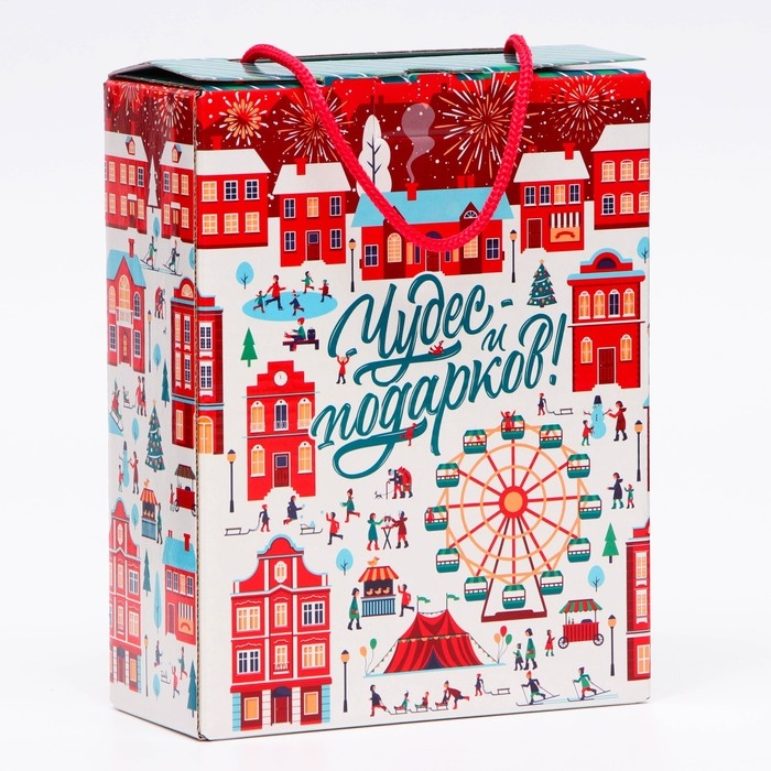 Новый год. Подарочная коробка новогодняя Лунапарк 16,5 х 7,5 х 21 см.
