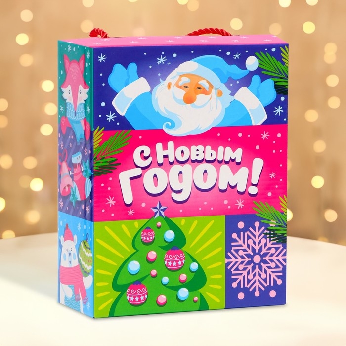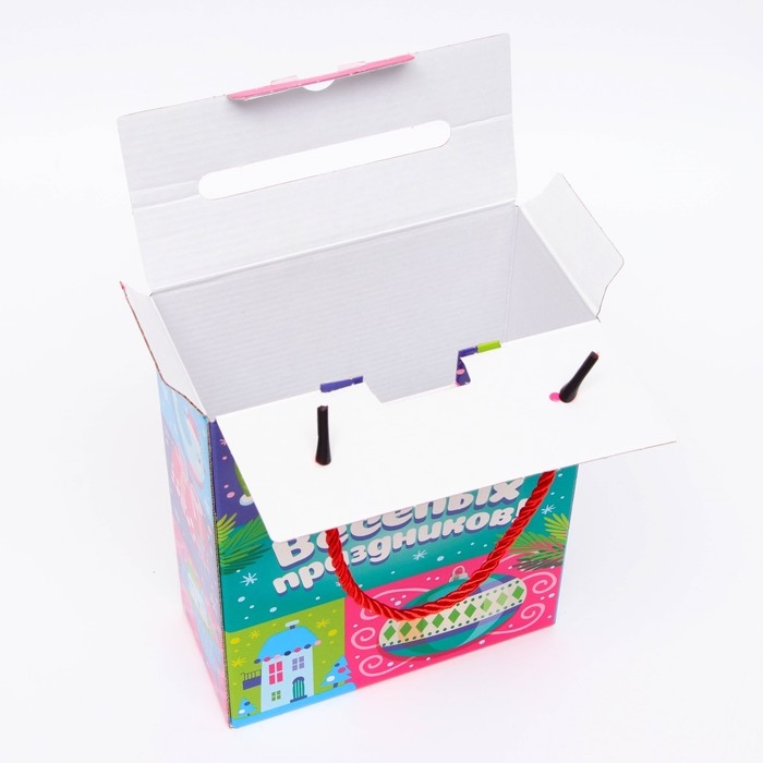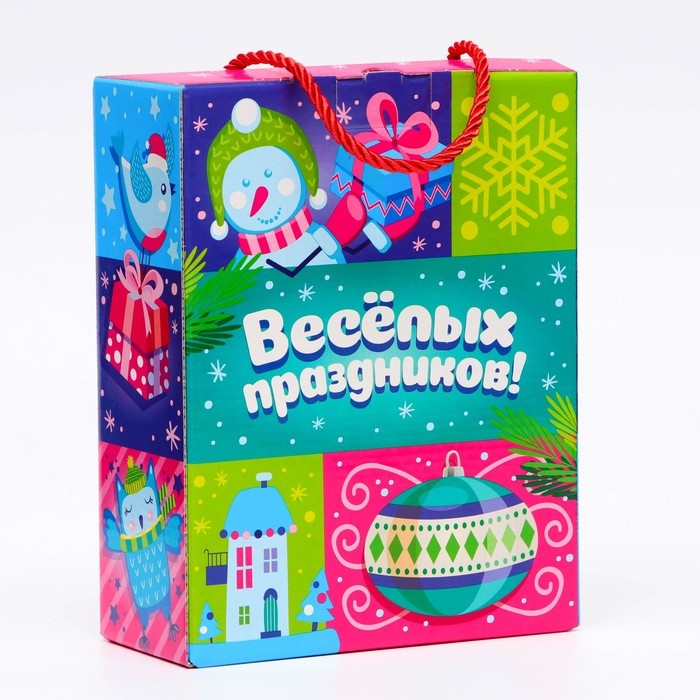 Коробка выполнена из качественных материалов, которые обеспечивают сохранность содержимого. Она имеет яркий и красочный дизайн, который отражает атмосферу Нового года.