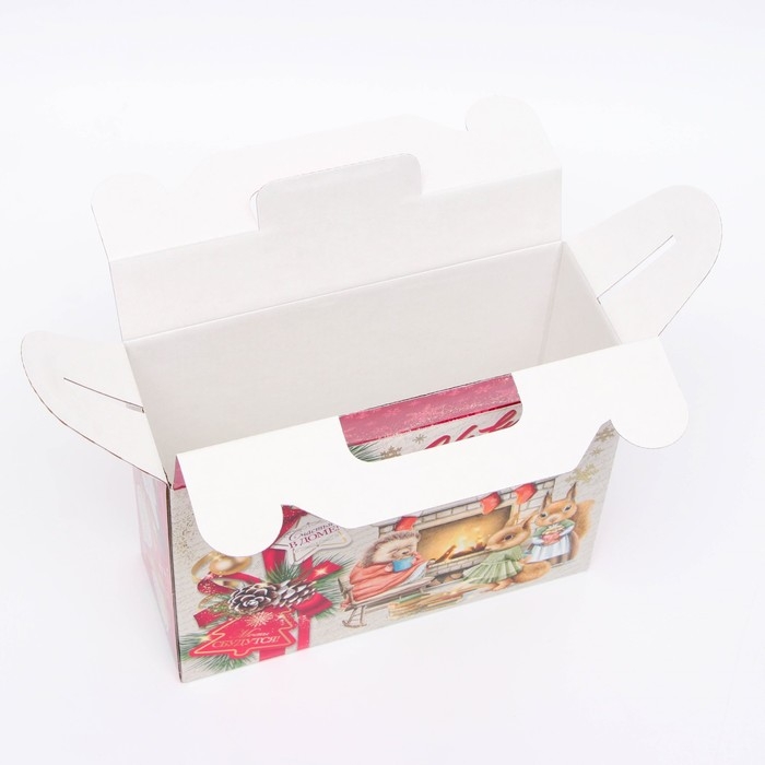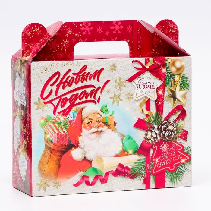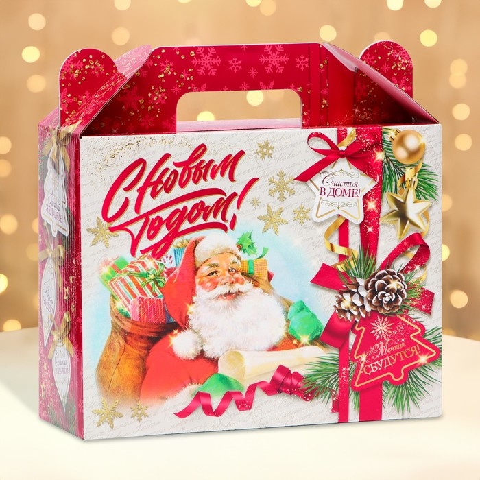 Коробка выполнена из качественных материалов, которые обеспечивают сохранность содержимого. Она имеет яркий и красочный дизайн, который отражает атмосферу Нового года.