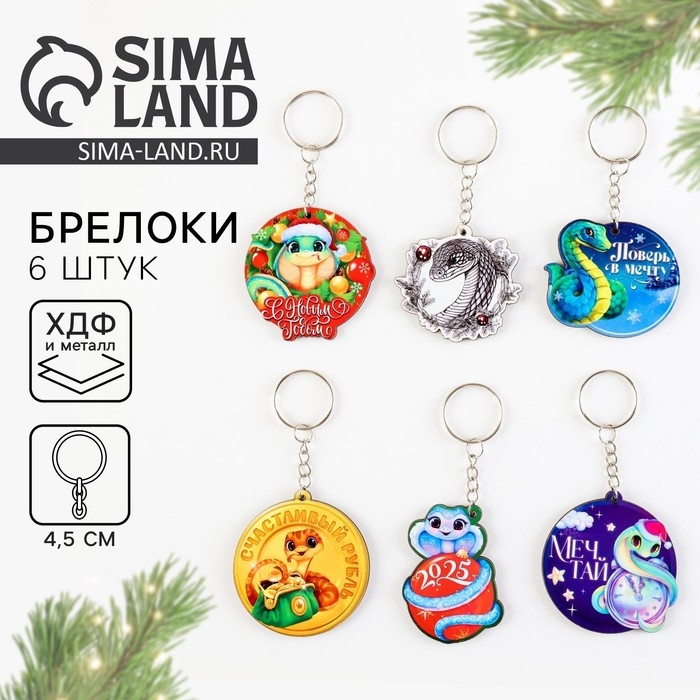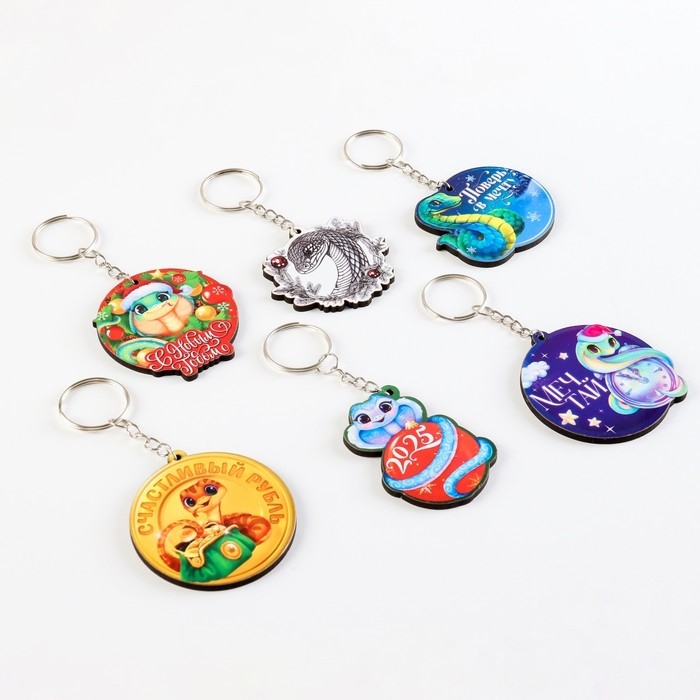 Брелок новогодний, для ключей, деревянный «Лучшего года», МИКС из 6 штук