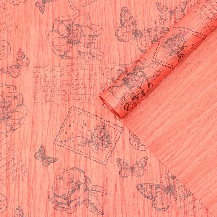 Бумага упаковочная, эколюкс крепированный, "Палермо", красный/черный, 0,7 x 5 м