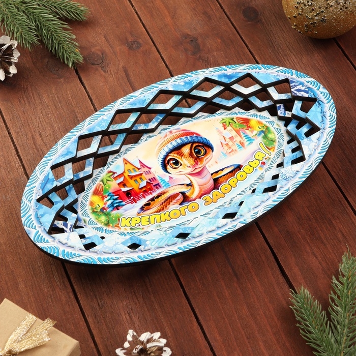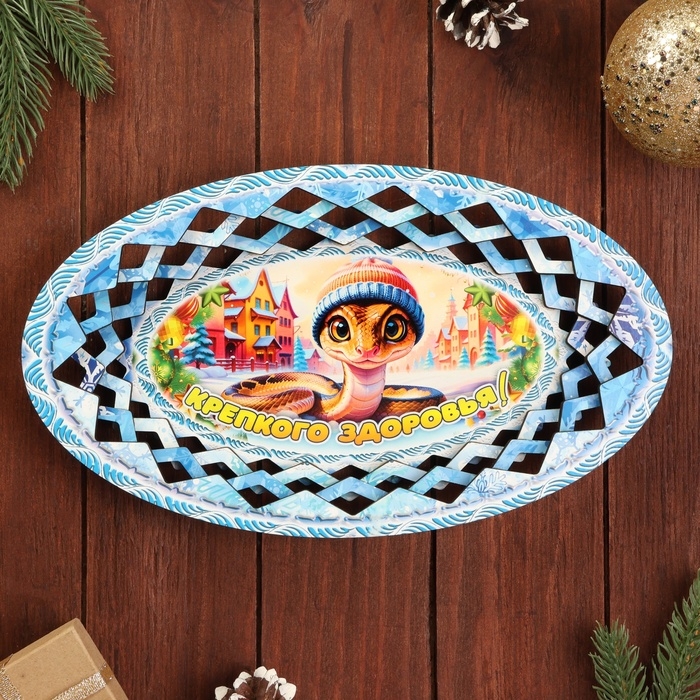 Тарелка конфетница овальная "Символ года 2025.Крепкого здоровья"