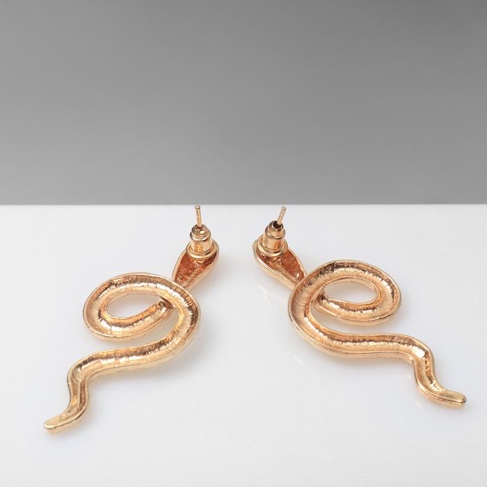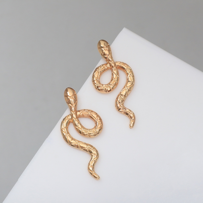 Новый год! Символ года 2025! Серьги металл «Змея» с узором, цвет золото