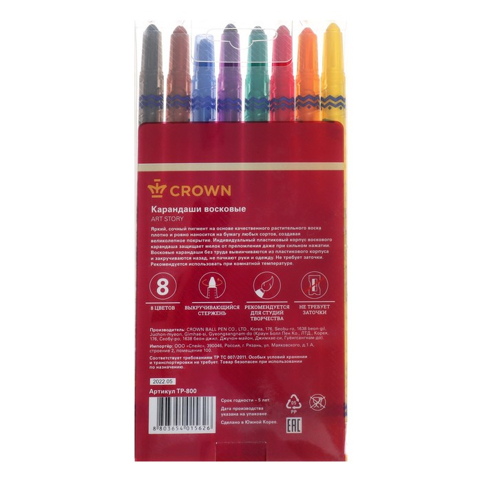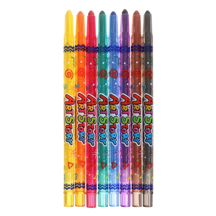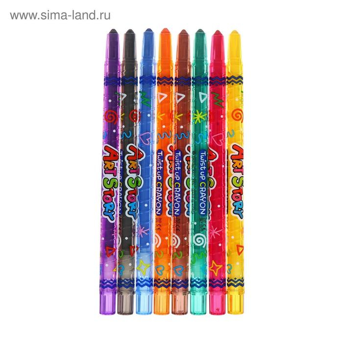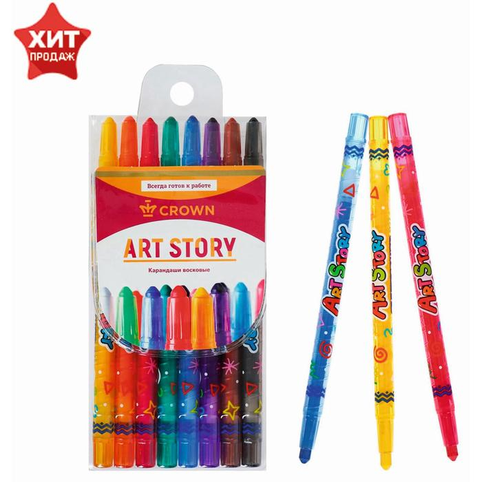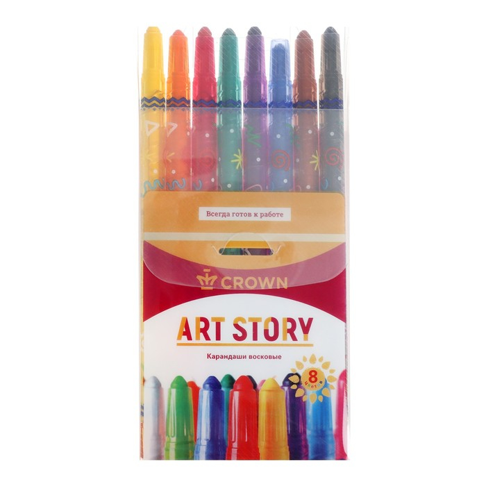 Мелки восковые 8 цветов Crown ArtStory, выкручивающийся стержень, ПВХ, европодвес, микс