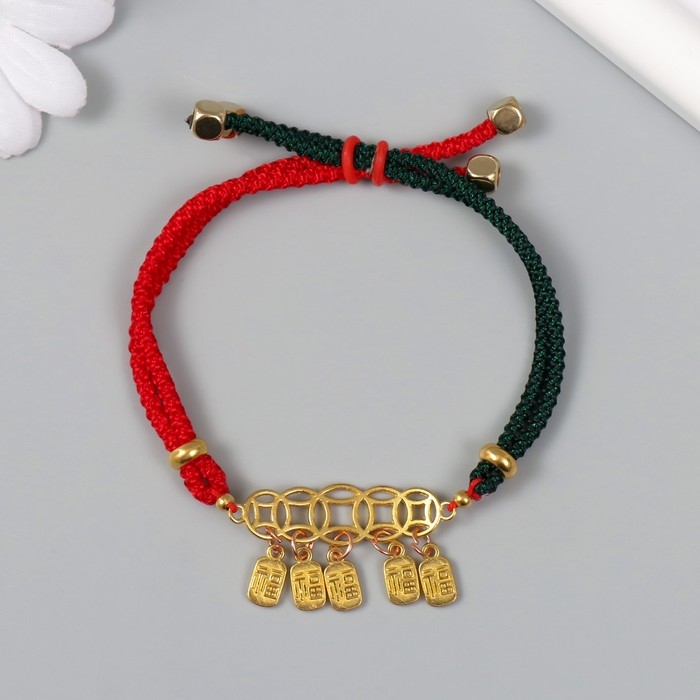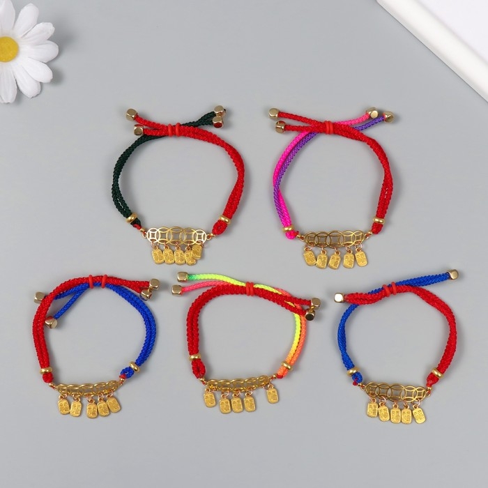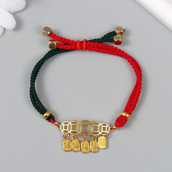 Браслет фен-шуй "Монетки и иероглифы" регулируемая длина