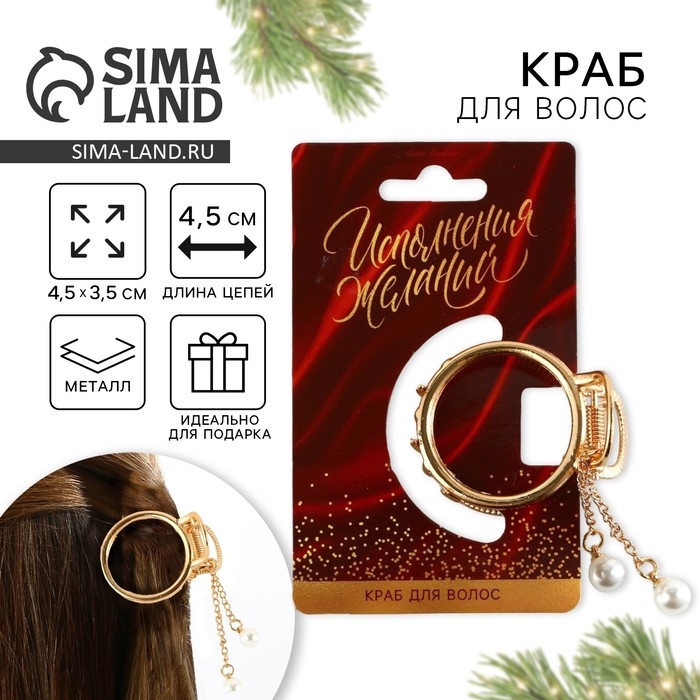 Краб для волос новогодний «Исполнения желаний», на Новый год, 4,5 см