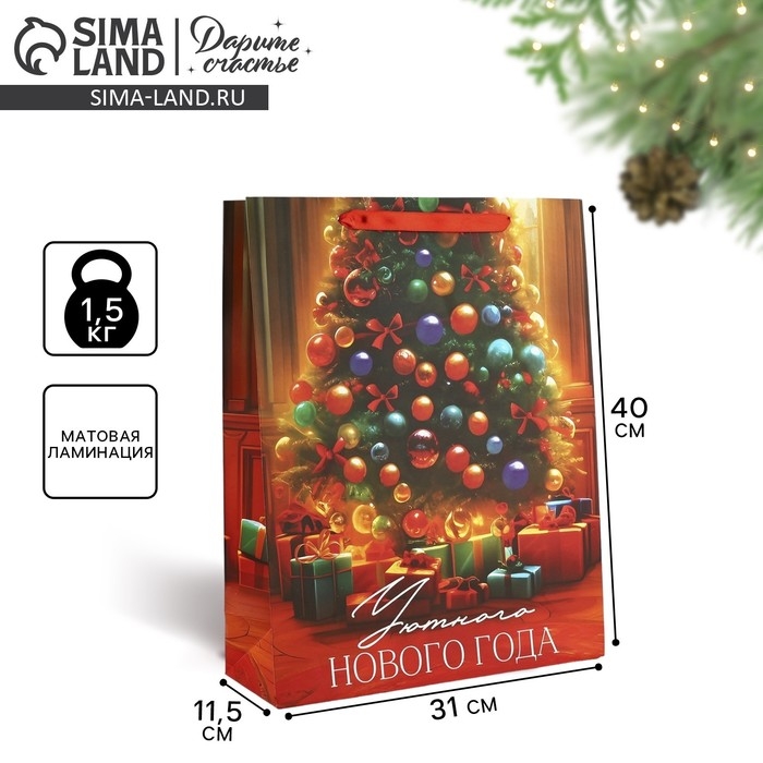 Пакет подарочный новогодний ламинированный «Уютный Новый год», ёлка, L 31 х 40 х 11.5 см , Новый год