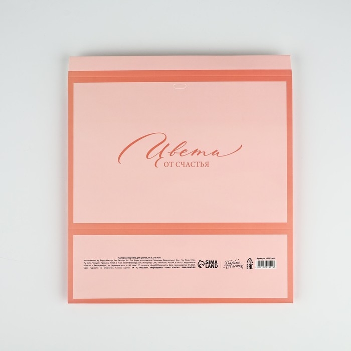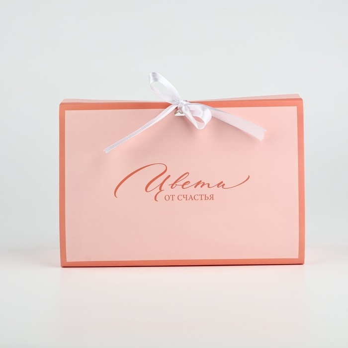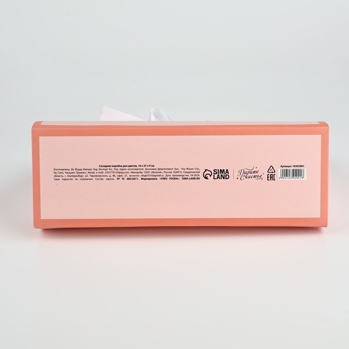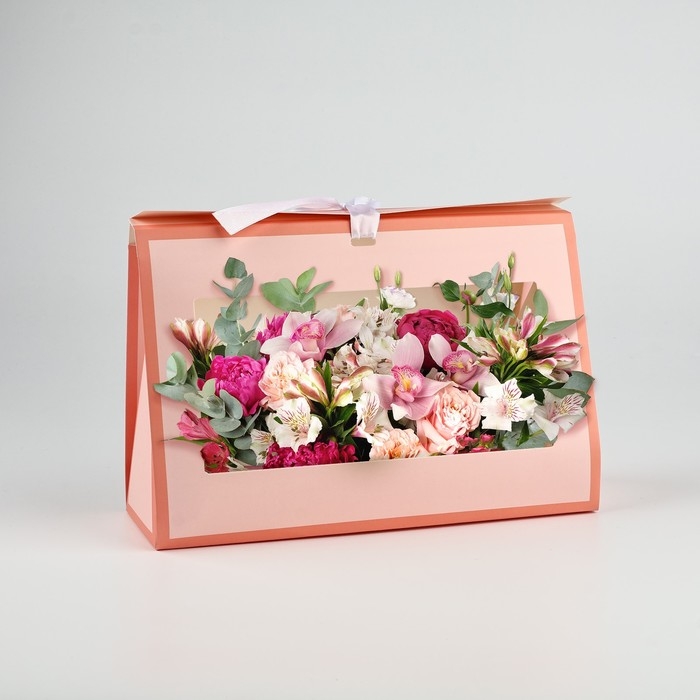 Складная коробка для цветов с окном «Цвети от счастья», персиковая, 16 х 27 х 9 см
