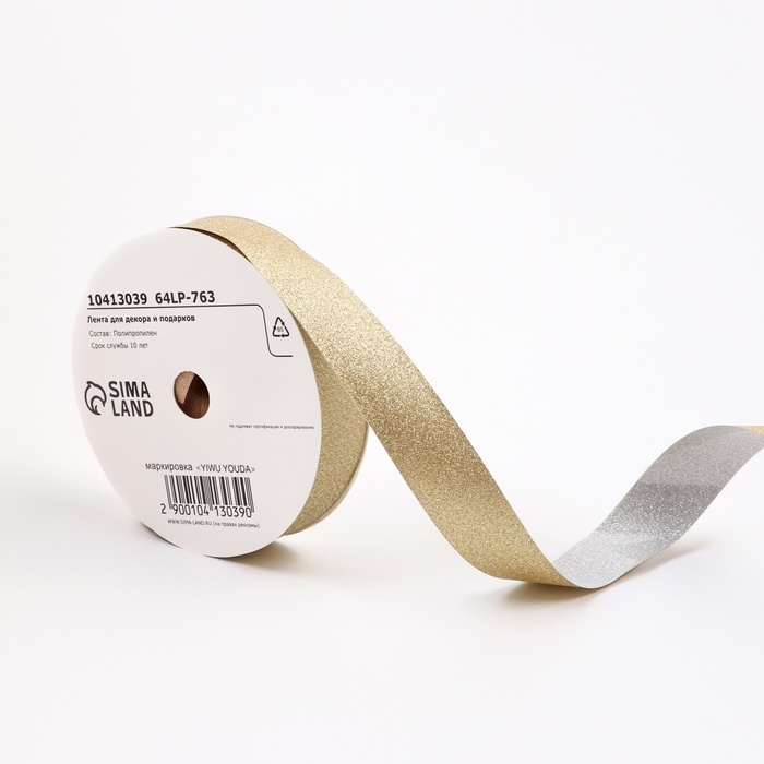 Лента "ТИФФАНИ" для декора и подарков,золото, 2 см х 50 м.