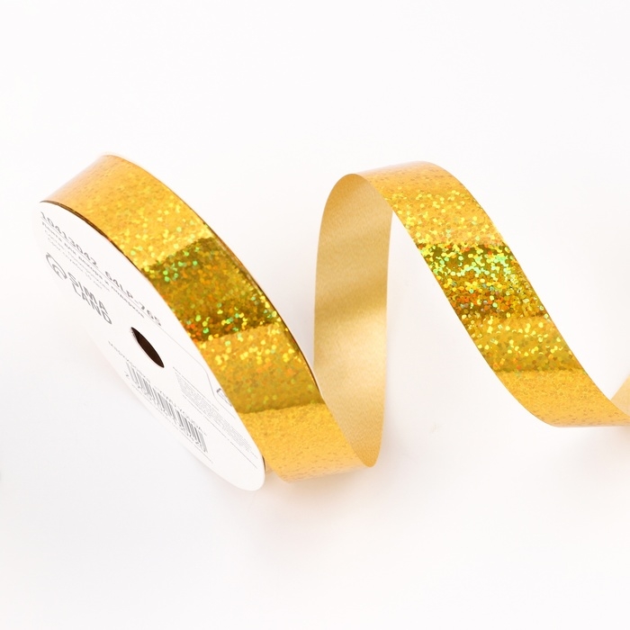 Лента голографическая для декора и подарков, золото, 2 см х 50 м