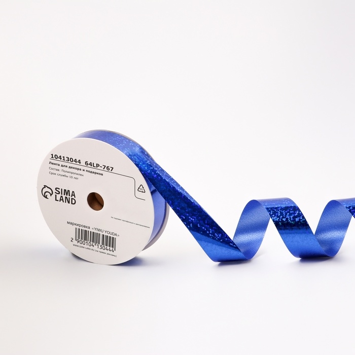 Лента голографическая для декора и подарков, синяя, 2 см х 50 м