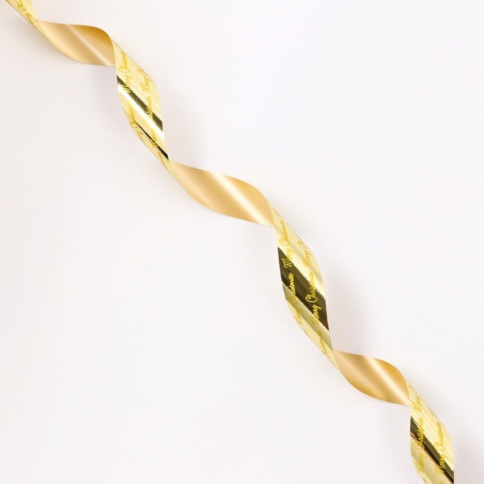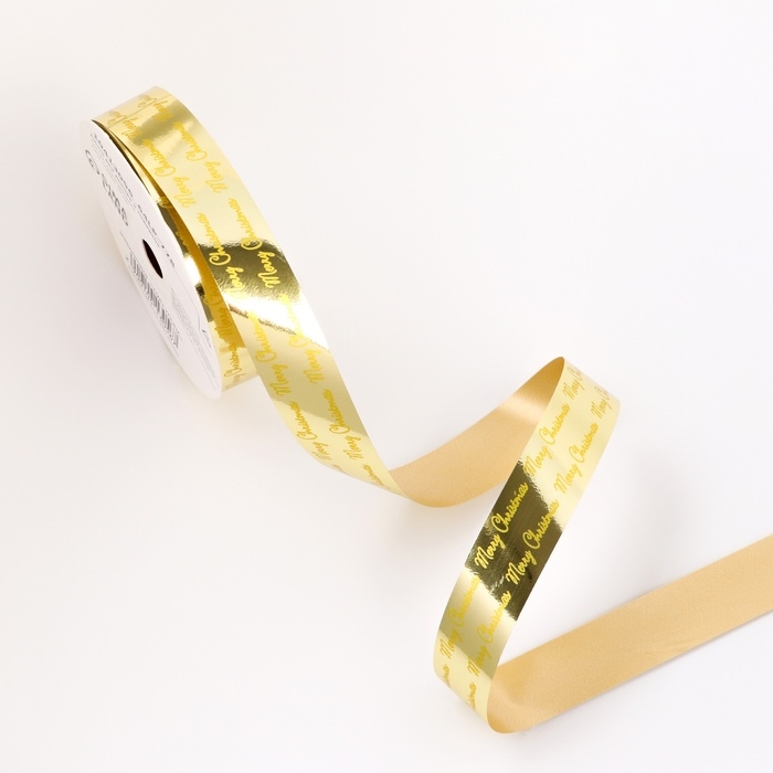 Новый год. Лента для декора и подарков новогодняя, "С рождеством", золотая, 2 см х 50 м.