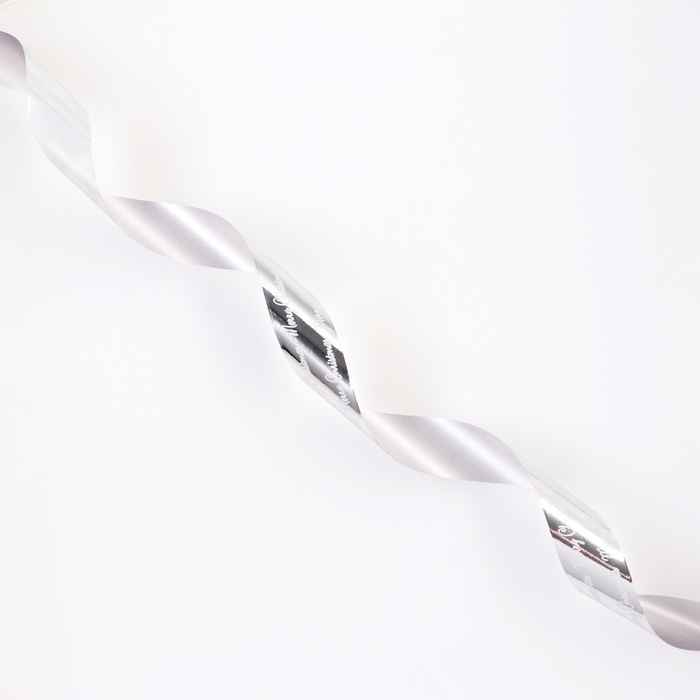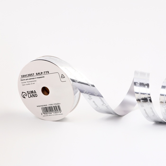 Новый год. Лента для декора и подарков новогодняя, "С рождеством", серебро, 2 см х 50 м.