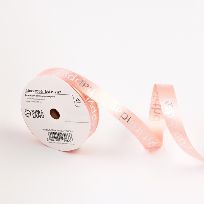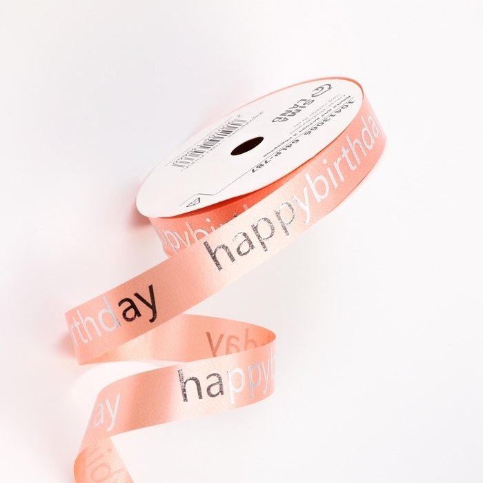 Лента для декора и подарков, "С днем рождения", розовый, 2 см х 50 м