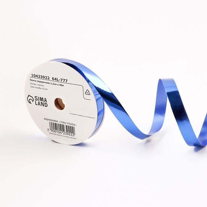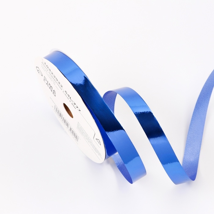 Лента для декора и подарков металлик, 1,2см х 45м, синяя