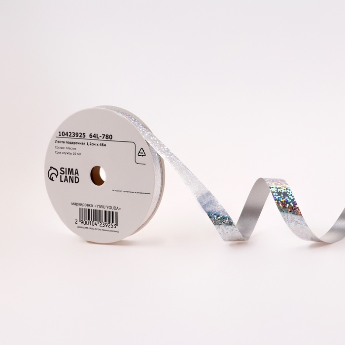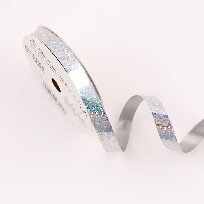 Лента для декора и подарков голография, 1,2см х 45м, серебряная