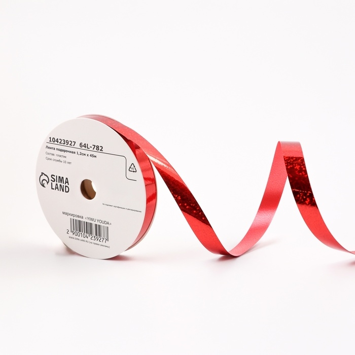 Лента для декора и подарков голография, 1,2см х 45м, красная
