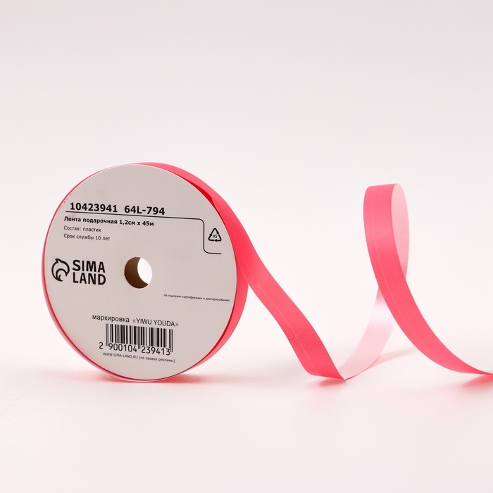 Лента для декора и подарков "Ярко матовая", 1,2см х 45м, барби