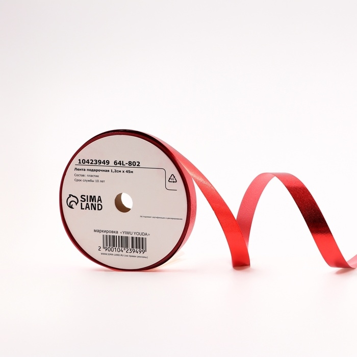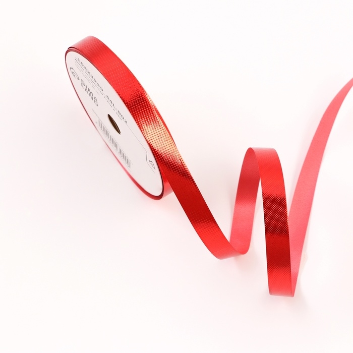 Лента для декора и подарков "Металл", 1,2см х 45м, красная