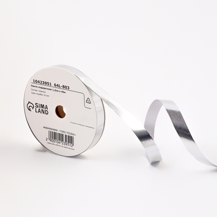 Лента для декора и подарков "Металл", 1,2см х 45м, серебряная
