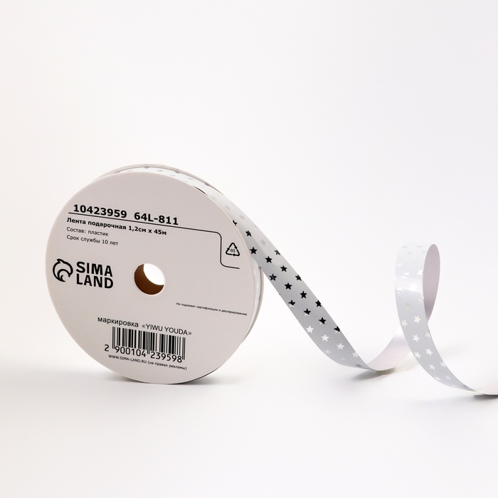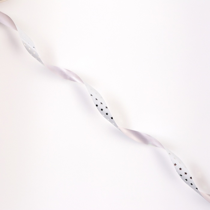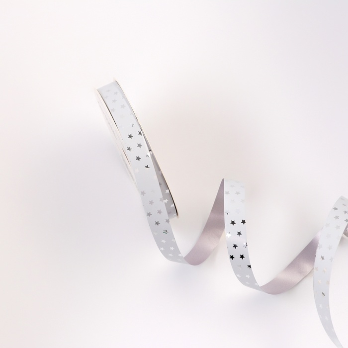 Новый год. Лента для декора и подарков новогодняя новогодняяя "Звездочки металлик", 1,2см х 45м, белая.