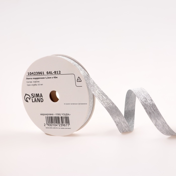 Лента для декора и подарков "Шелк", 1,2см х 45м, серебряная