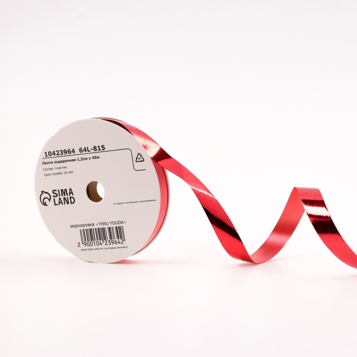 Лента для декора и подарков "Ярко матовая", 1,2см х 45м, красная