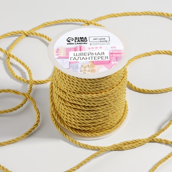 Шнур витой, d = 5 мм, 9 ± 1 м, цвет золотой