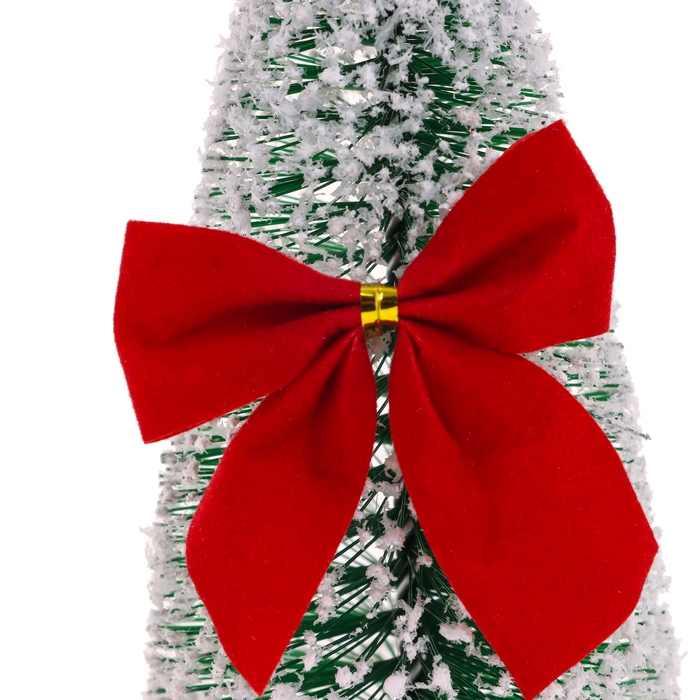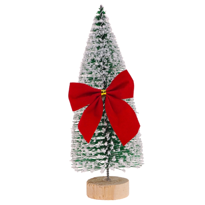 Новогодний декор «Ёлка на подставке с бантом», заснеженная, 6 × 6 × 15 см