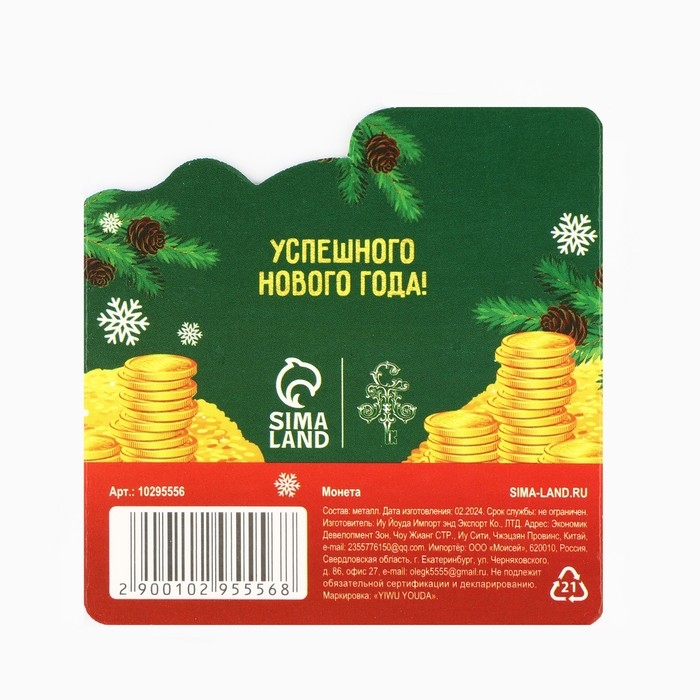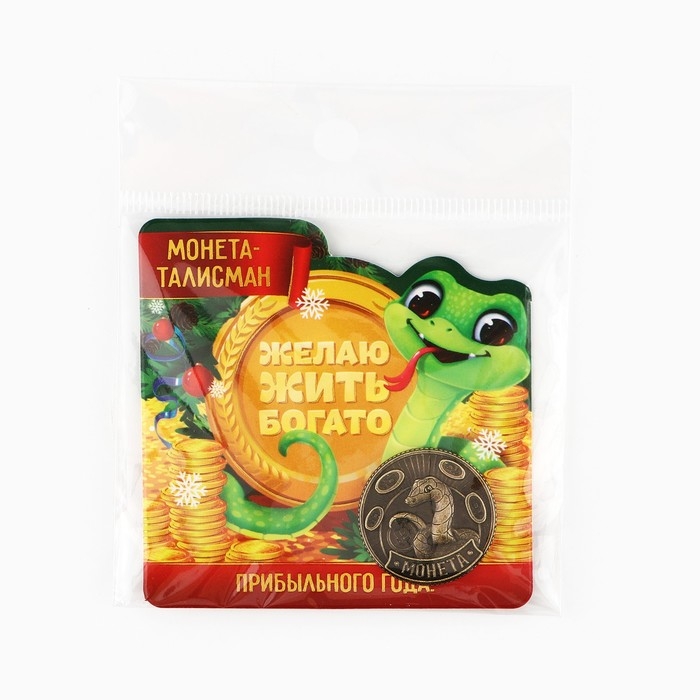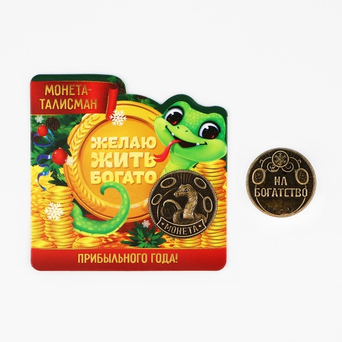 Монета новогодняя амулет «Новый год: Жить богато», диам 2.5 см