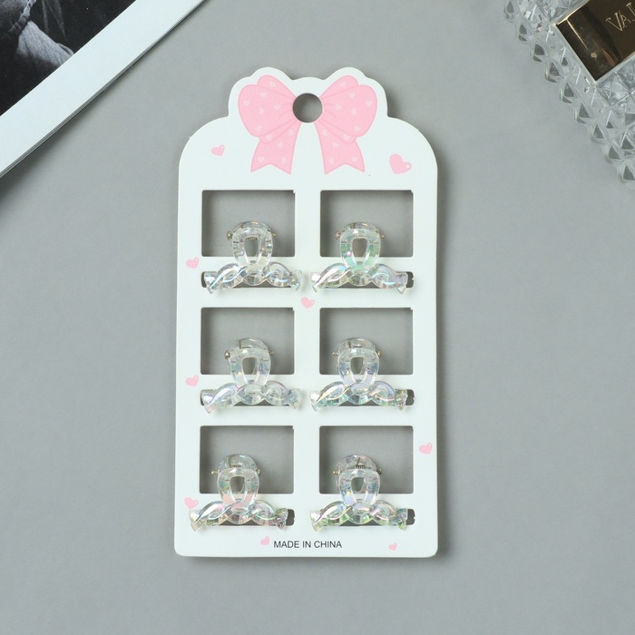 Краб для волос "Аванти" (набор 6 шт) петельки, 2,5 см, прозрачный
