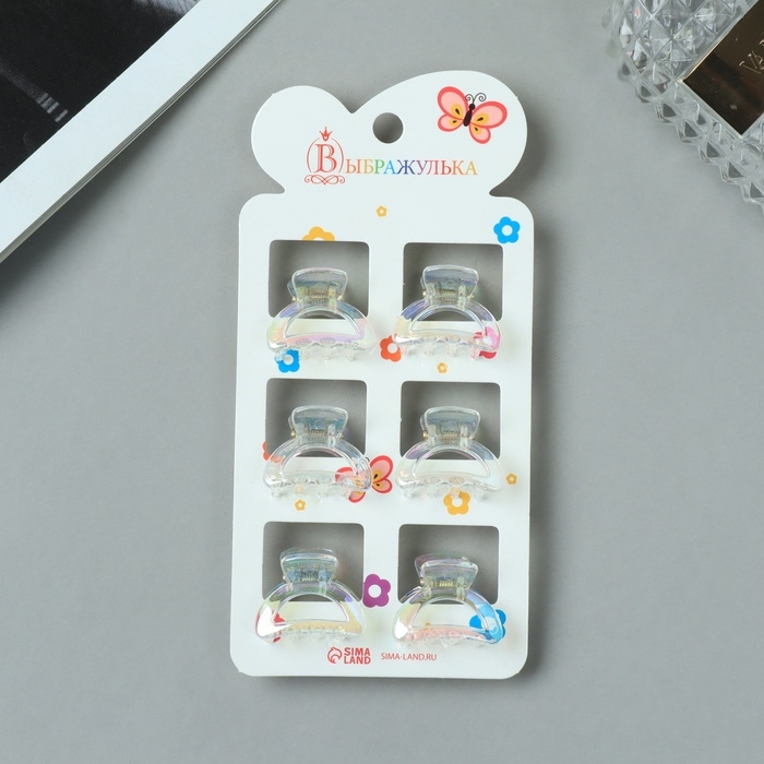 Краб для волос "Аванти" (набор 6 шт) дуга, 2,5 см, прозрачный