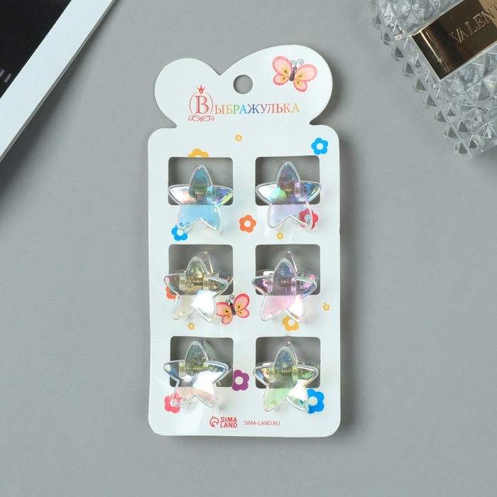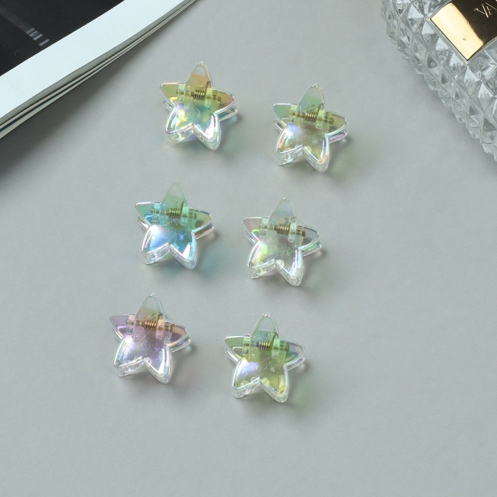 Краб для волос "Аванти" (набор 6 шт) звезда, 2,4 см, прозрачный