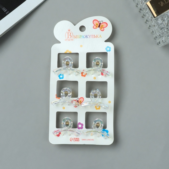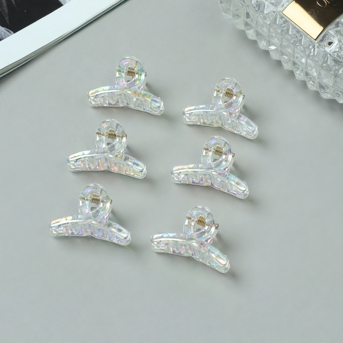 Краб для волос "Аванти" (набор 6 шт) петля, 3 см, прозрачный