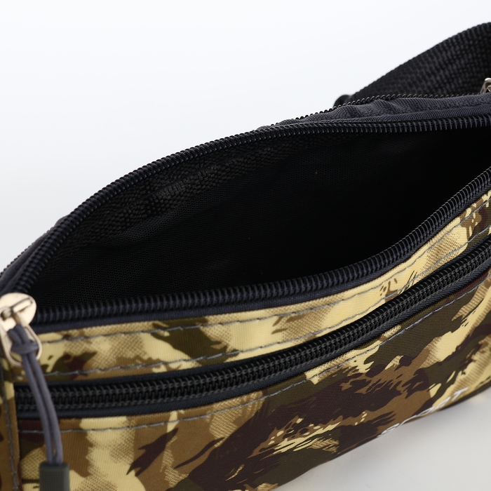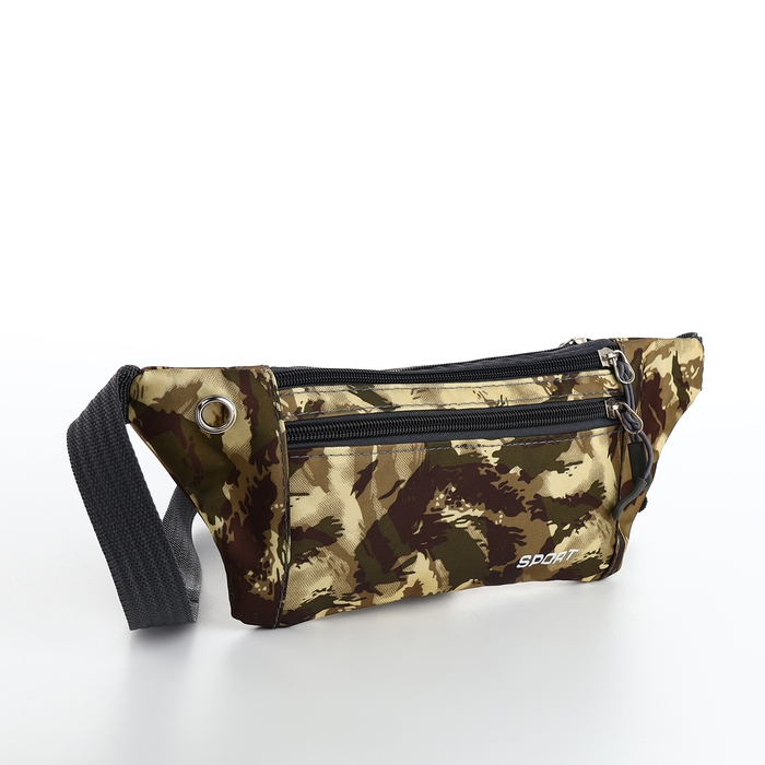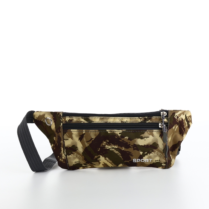 Поясная сумка на молнии, 2 наружных кармана, цвет бежевый/камуфляж