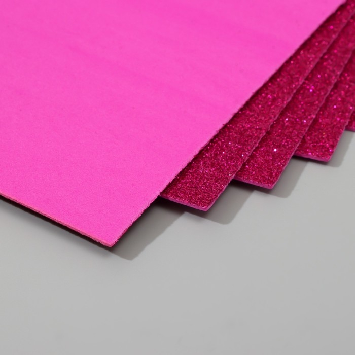 Набор глиттерного фоамирана (5 листов) 2 мм 20х30 см, фуксия