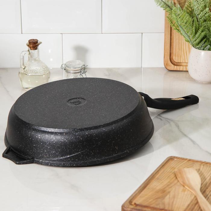 Сковорода «Гранит Star», d=30 см, стеклянная крышка, антипригарное покрытие, тёмно-синий