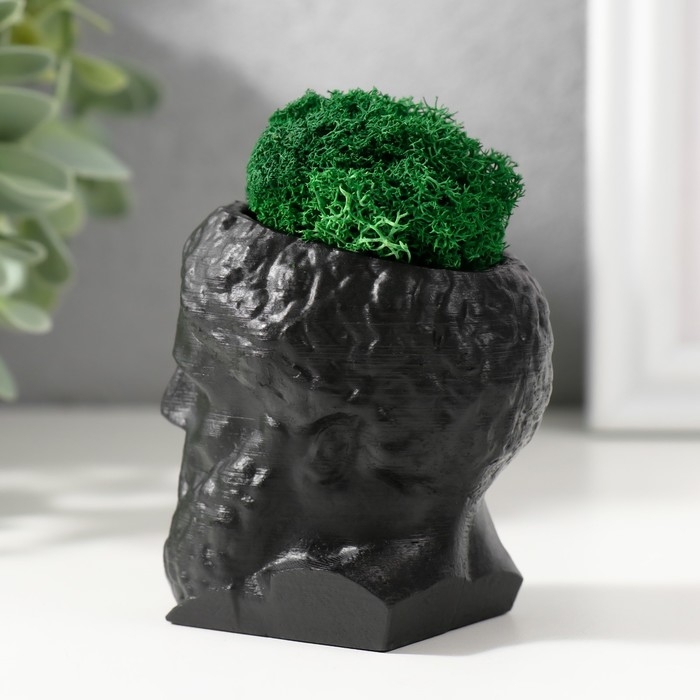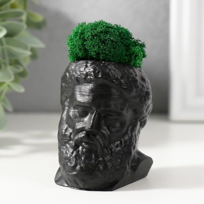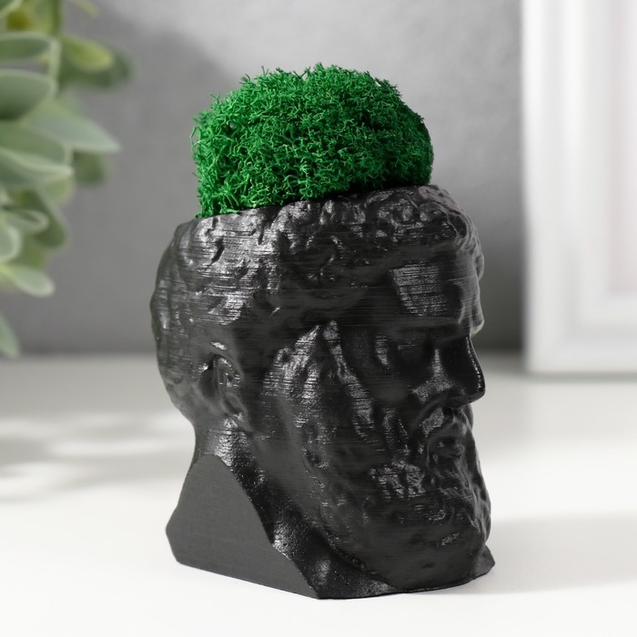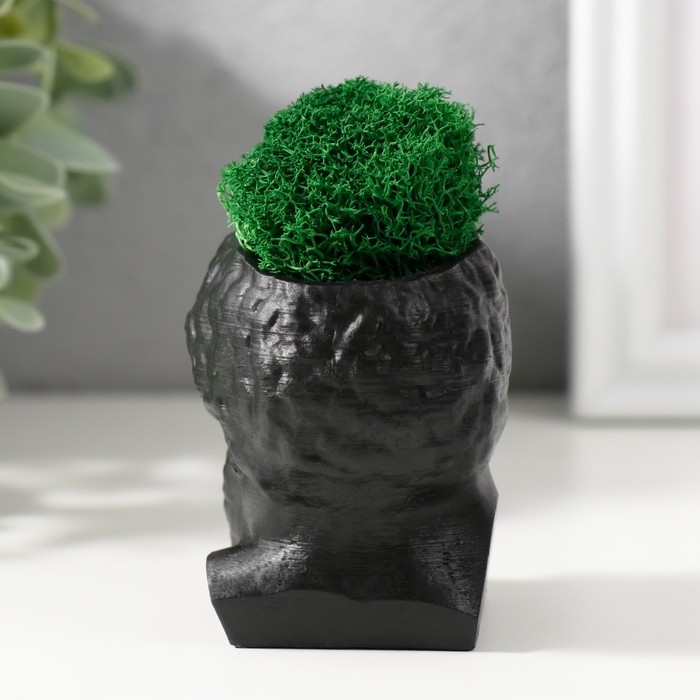 Кашпо бетонное "Прометей" высота 6,5 см, ширина 5 см черный со мхом (мох зелен. стабил)