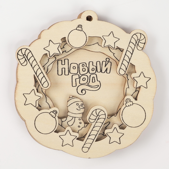 Ёлочная подвеска из дерева своими руками на новый год «Венок», новогодний набор для творчества