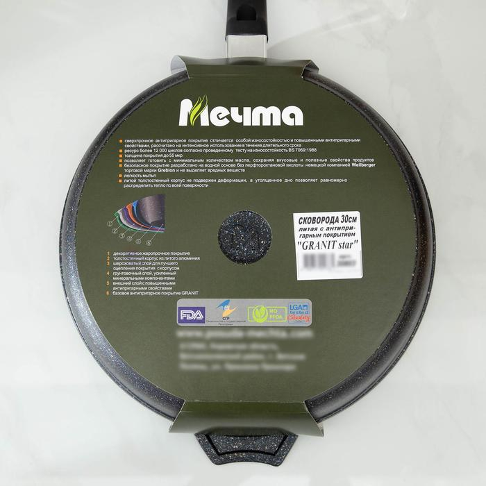 Сковорода «Гранит Star», d=30 см, пластиковая ручка, антипригарное покрытие, тёмно-синий