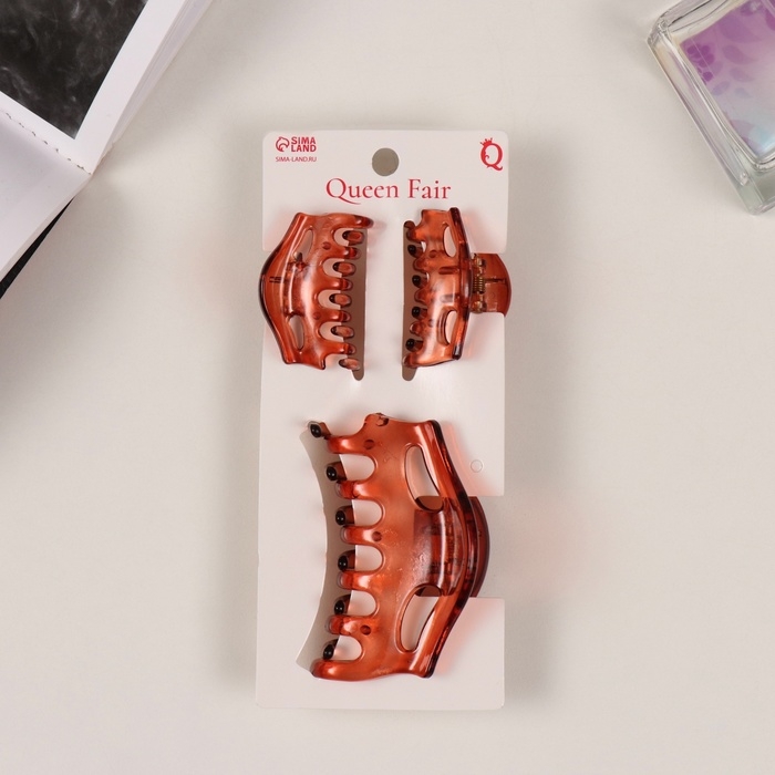 Краб для волос "Флориана" (набор 3 шт) геометрия дуга, 6,5 и 4 см, коричневый