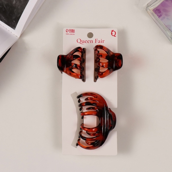 Краб для волос "Флориана" (набор 3 шт) объём, 6,5 и 3,5 см, тёмно-коричневый