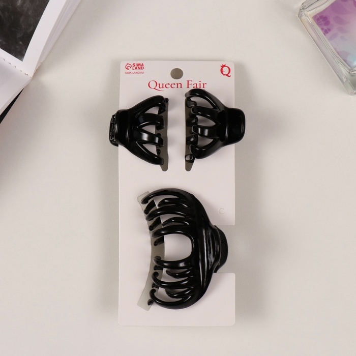 Краб для волос "Флориана" (набор 3 шт) объём, 6,5 и 3,5 см, чёрный