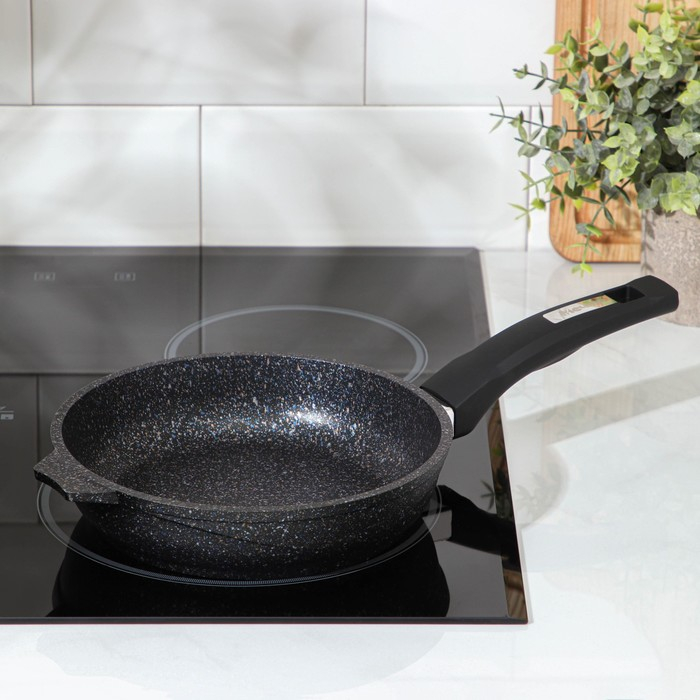 Сковороды серии Granite выполнены из прочного литого алюминия. Посуде не страшна деформация под воздействием высокой температуры, изделие прочное и лёгкое.
