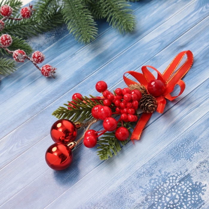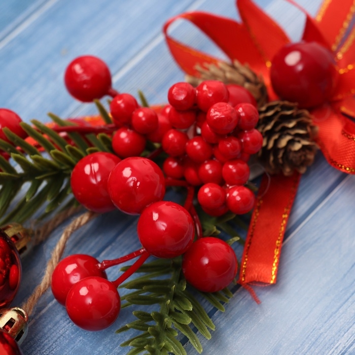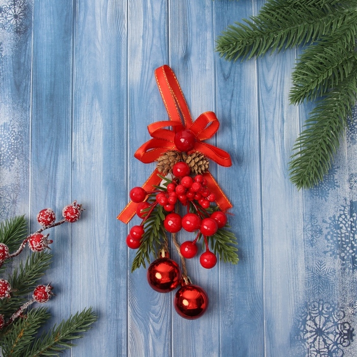 Украшение ёлочное "Новогоднее очарование" ягодки бантик шишки, 12х7 см, красный