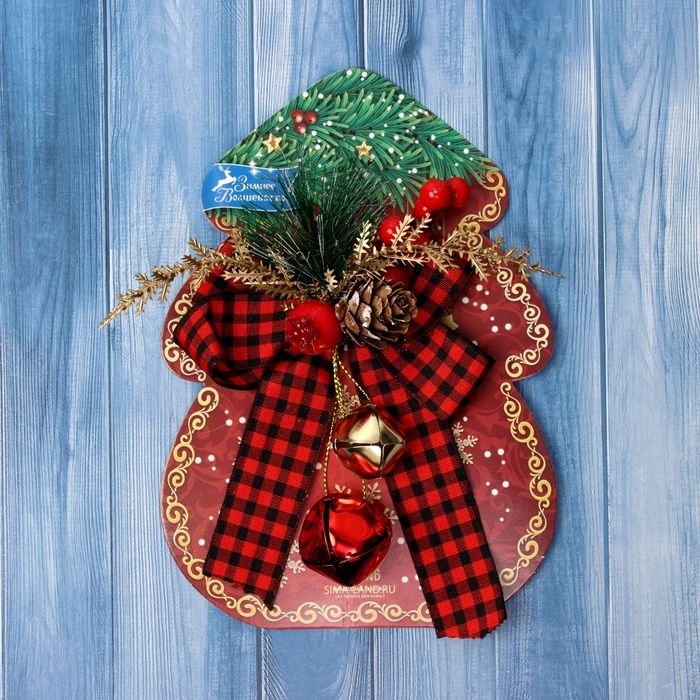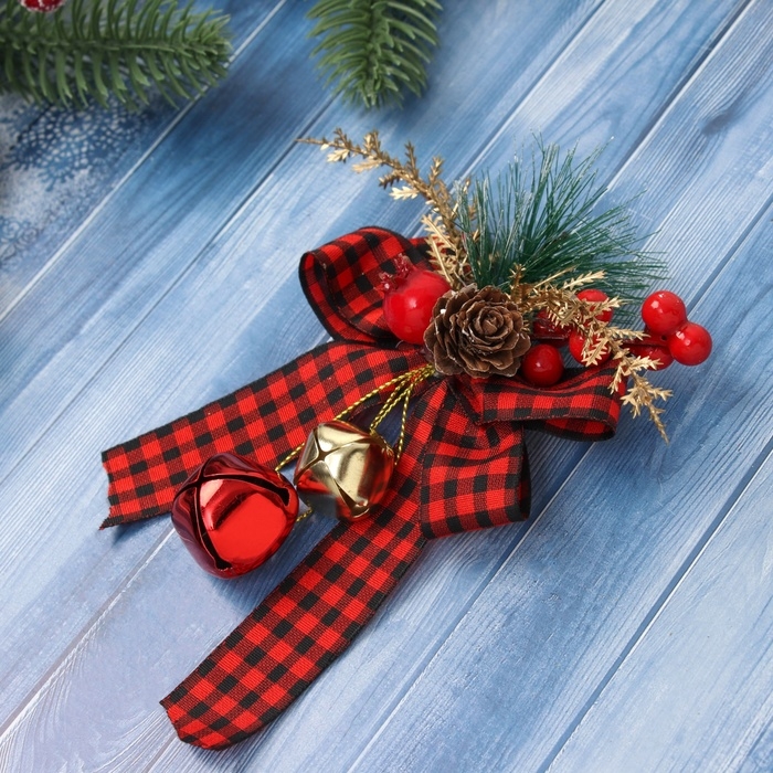 Украшение ёлочное "Новогодний стиль" бант клетка, 12х9 см, красный