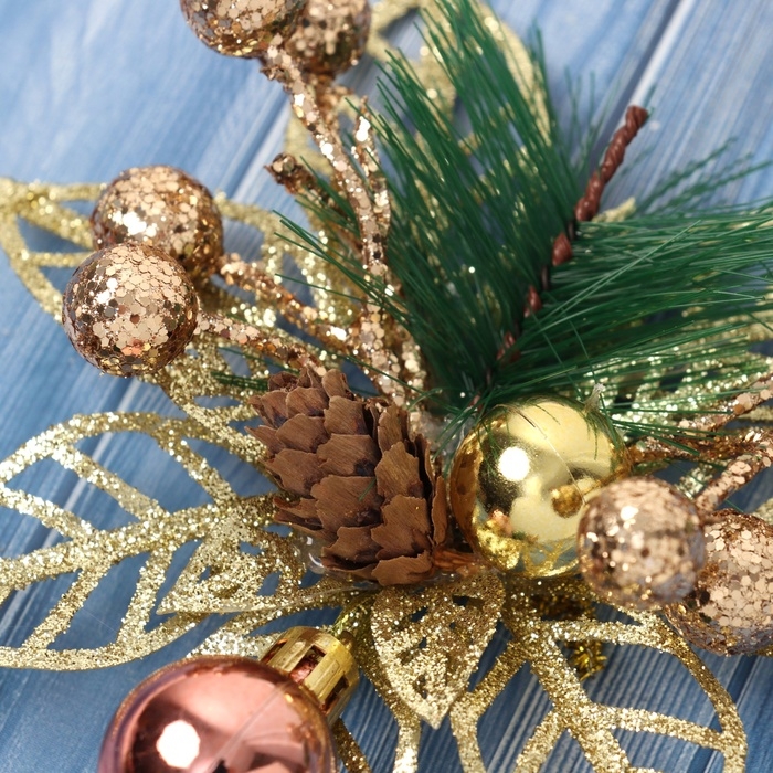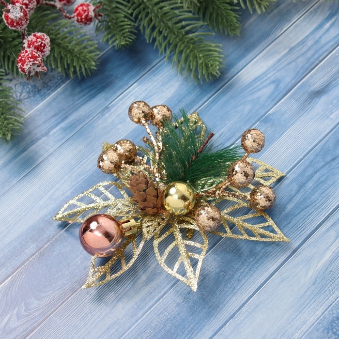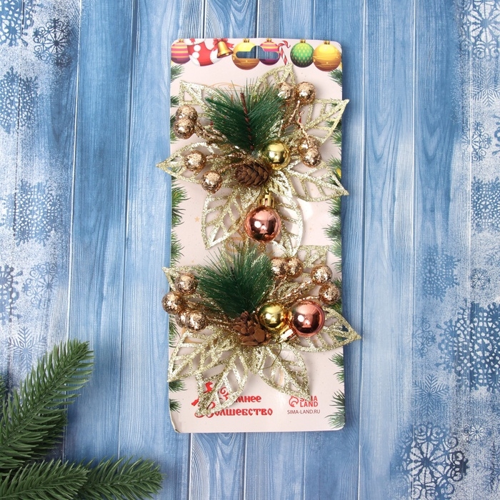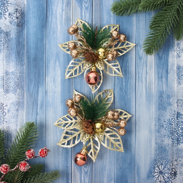 Украшение ёлочное "Праздничные цветы" (набор 2 шт) шарики, 12 см, золото