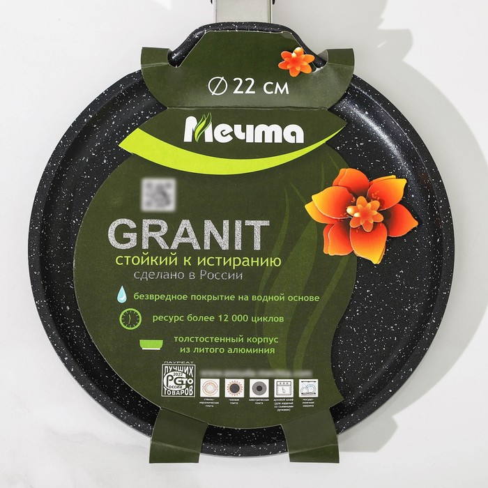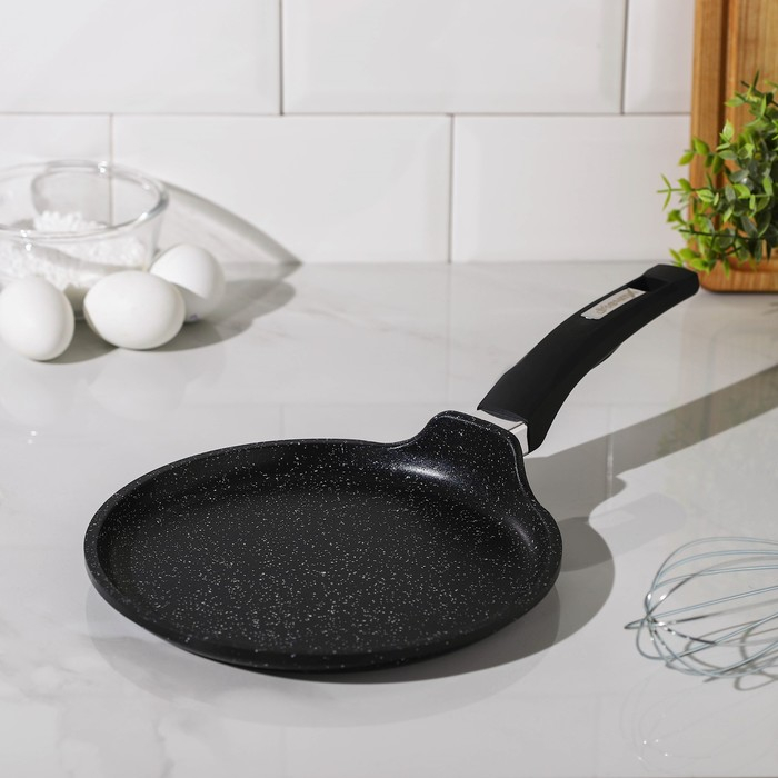Сковорода блинная «Гранит Black», d=22 см, пластиковая ручка, антипригарное покрытие, цвет чёрный